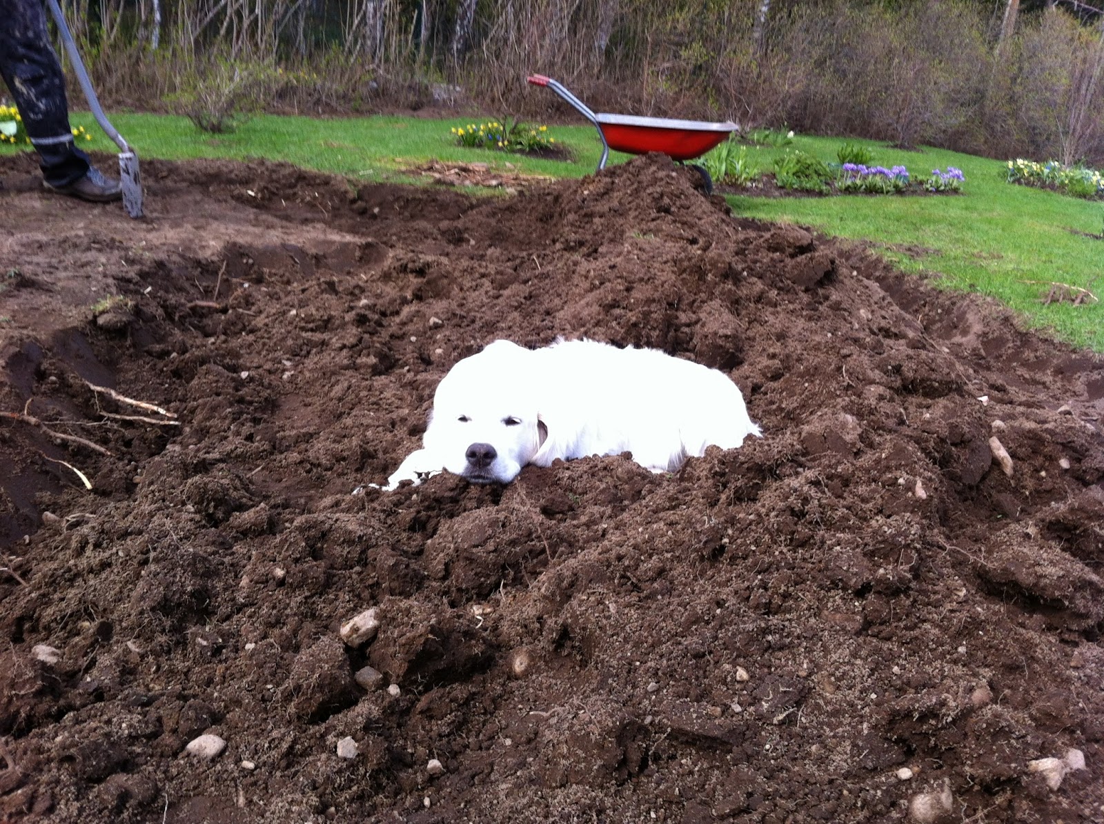 Mikähän tuossa käännetyssä mullassa oikein koiria kiehtoo, mei tollerikin tykkää makoilla käännetyssä maassa:))