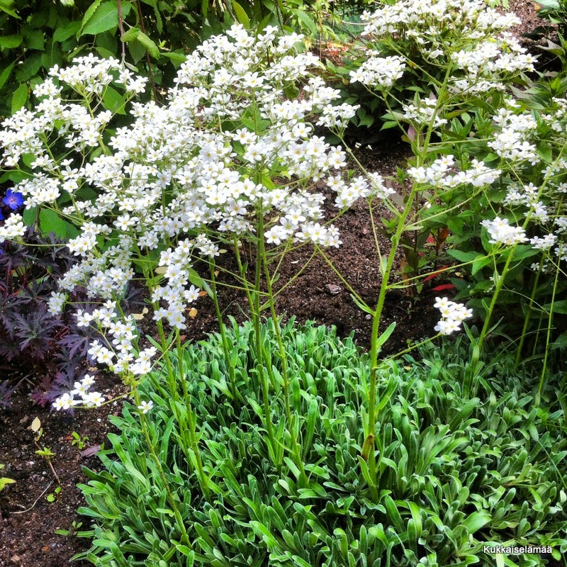 36. No voi harmitus. Ohjeesi polun tekoon ei kuitenkaan mennyt hukkaan ja moni saa siitä varmaan apua polunperustamiseen. Kauniisti ja runsaasti kukkii pihallasi sateista huolimatta ja nyt vain odotellaan aurinkoa ja lämpöä. Tuo valkokukkainen kivikkokasvi on isorikko ( Saxifraga hostii) ja muihin kyselemiisi kasveihin saitkin jo vastauksen. Tiedätkö muuten, että orvokit voi leikata lyhyiksi siinä vaiheessa, kun versot venyvät, kukinta laantuu ja se käyttää energiaansa kukkimisen sijasta siementen kehittämiseen. Muutaman viikon sisällä kukinta uusiintuu ja orvokki ehtii vielä tehdä uudetkin siemenet seuraavaa kesää varten. Hyvää ja toivottavasti aurinkoista viikonloppua sinule.
