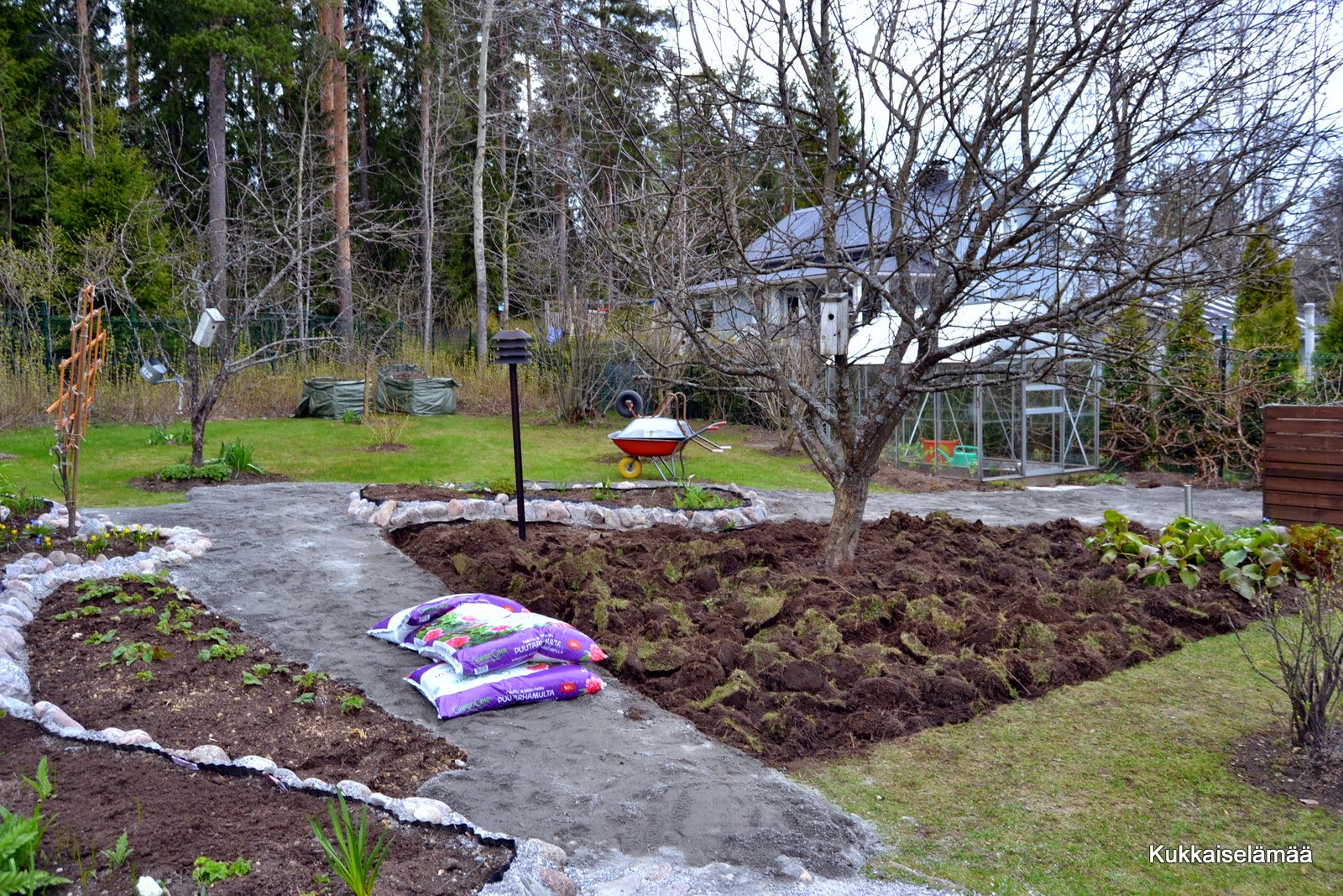Näyttää hyvälle! Pidän erityisesti tuosta uudesta kukkapenkistä omenapuun alla.