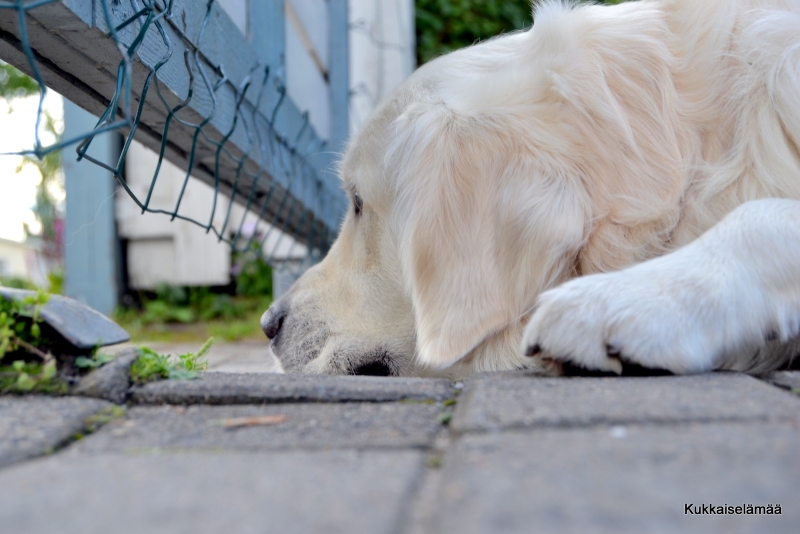 16. Naurattaa tuo Mikki vahtimassa aidan alta 🙂 Saispa olla siilejä syömässä niitä kotiloita, jospa Mikkikin tottuis niihin 🙂