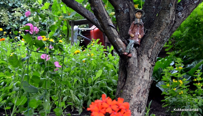 Jaa-a. Loma vetelee viimeisiään. Enää viikko. Sitten alkaa koulutie. Onneksi on kukintaa jäljellä ja kukkasista voi vielä nauttia. Viileistä keleistä ja luomukastelusta on ollut se etu, että nämä etupihan kukat ovat kukkineet kauemmin kuin koskaan ennen.