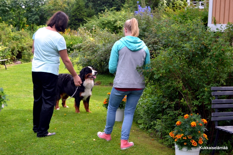 Talon isäntäväki on aiemmin kasvattanut berninpaimenkoiria. Koiraharrastuksen tilalle tuli puutarhaharrastus ja entiset koiratarhat ovat vuosien kuluessa muuntuneet puutarhaksi. Melkoinen urakka!
