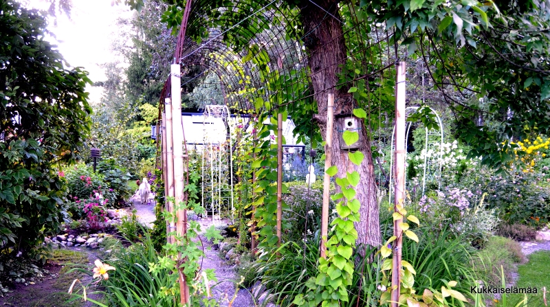 Kuvailin eilen illalla puutarhassa ja moniin kuviin tuli aika jännä valo. Suorastaan maaginen valo. Alla kuva ”Pusutunnelista”.