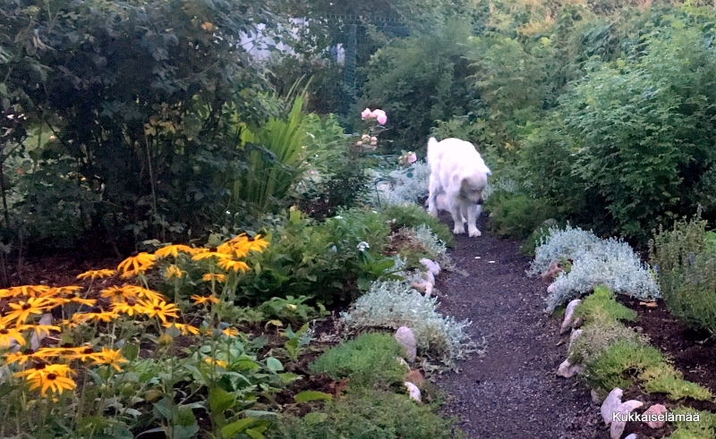 8. Ei makaa, mutta nuuskuttaa sitä aina mennessään. Kyllä särkee. Välillä meinaa hermo mennä, mutta ei auta kuin kestää. Kaikkeen kai tottuu. Jopa ainaiseen ontumiseen ja kipuun. Mut sen olen päättänyt, että puutarhasta ja sen hoidosta en luovu, vaikka pää olisi kainalossa. Jotain ihanaa elämässä on oltava tavallisen tallaamisen lisäksi.
