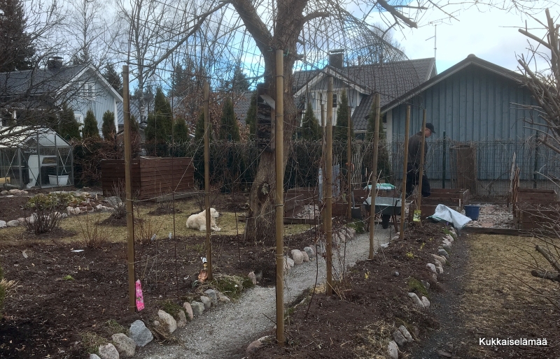 Meillä ei ole oikeastaan vielä voinut tehdä puutarhassa mitään, luntakin on vielä.
