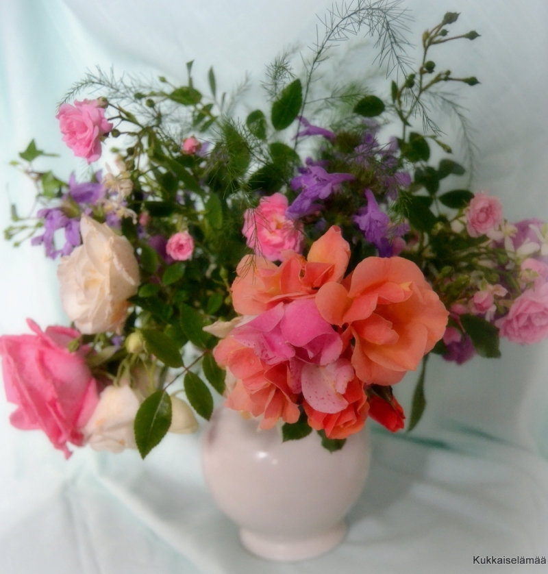 15. Aivan ihania kukkakimppuja kuitenkin! Ei tullut kesää tännekään. Vähän väliä on satanut, tuullut ja ollut liian kylmä kesäksi.
