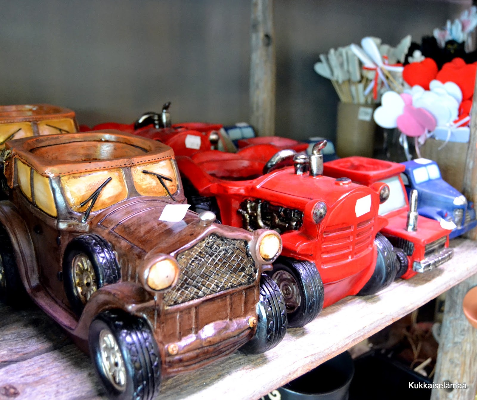 Heips! Loma vetelee viimeisiään. Ja, kas, siemenet ovat vieläkin kylvämättä. Pelargonien mullanvaihdonkin oikaisin, lisäämällä ruukkujen päälle uutta multaa ja ravinnepuikkoja. (Puikkoja on sinullekin tarjolla arvonnan muodossa täällä.) Näppärää! Laiskan naisen toimintaa.. Pelakat saavat sinnitellä noine hyvineen kesään ja, että pääsen vaihtamaan mullat ulkona. Viime vuonna olin näemmä reippaampi. Tein reippaudesta oikein videonkin. Viikolla kävin sentään Imatralla blogiyhteistyökumppanillani Kukkakauppa Haakanassa kukkaopissa. Kerroinkin reissusta täällä. Haakanassa on niin kaunista ja ihanaa. Napsin sieltä muutamia kuvia.