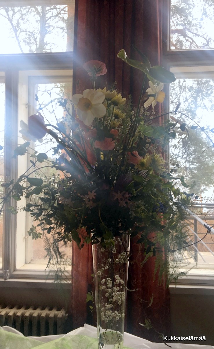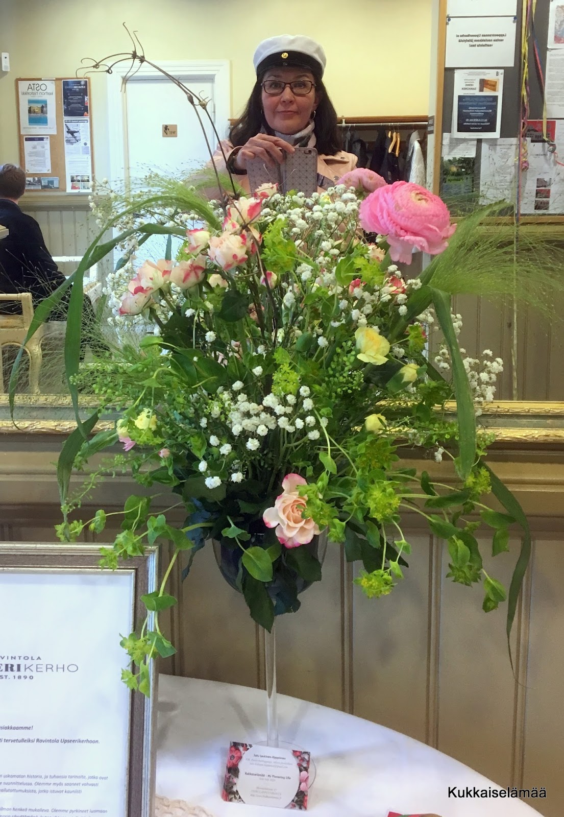 6. Upseerikerho on hieno paikka ja Ulla on taitava keittiömestari. Taitava olet sinäkin – kerrassaan upeat kukka-asetelmat olit loihtinut! Mukavaa vappua teille!
