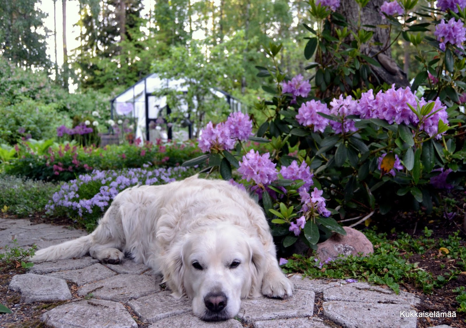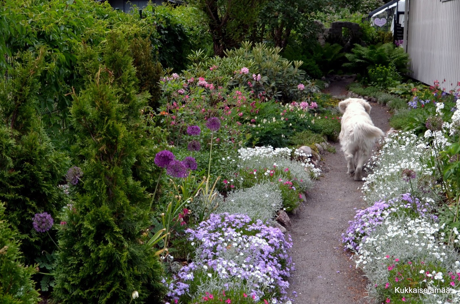Voit tuota teidän puutarhaa, se on kyllä ihan mielettömän upea. Mulla haaveissa alppiruusu ja paikka sille olisi varmaan leikkimökin toinen kylki kun sinne se saisi varjoisan paikan. Omassa pihassa ottaa aivoon kaksi pupun runtelemaa omenapuuta, ne tekisi mieli kaivaa veks ja laittaa jotain uutta tilalle mutta kun se kasvuvauhti ei ole mitenkään huima. Kyllä ne puut on elossa mutta rusakko popsi ne silloin nuorena puuna aika pahasti ja toisessa ei oikein enää ole kunnon päärunkoa niin se ei näytä puulta vain enemmänkin rumalta pensaalta 🙁