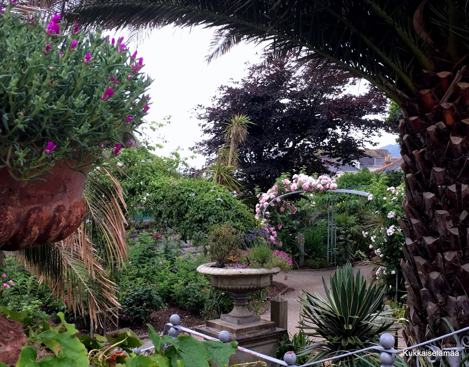 Heips! Ensimmäinen autoilumme Cornwallissa suuntautui Falmouthiin. Tuolloin oli matkamme ainoa sateinen päivä. Falmouth on yliopistokaupunki merenrannalla. Ihan sattumalta osuimme The Queen Maryn puutarhaan, jonne on vapaa pääsy. Puutarha on rannalla.