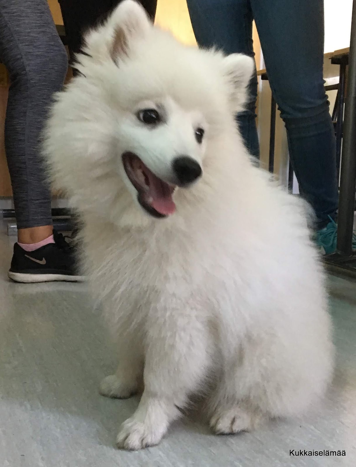 Heh, ja kaiken tämän välissä käyn töissäkin. Oppitunnilla kävi suloinen vieras, Jekku 3 kk. Oppilas piti Jekusta esitelmän på svenska ja Jekku tuli näytille.