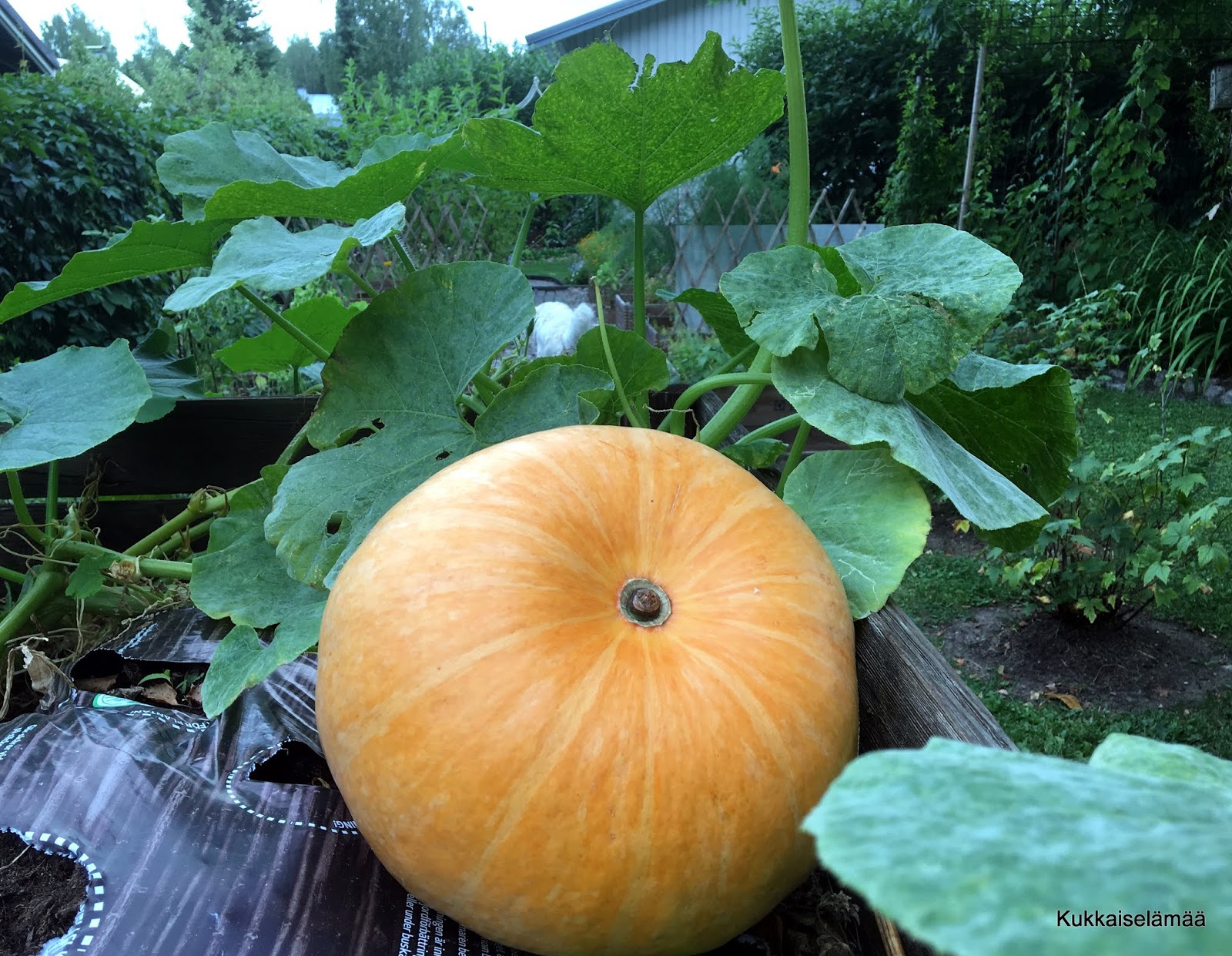 15. Kesäkurpitsoja tulee, mutta vain tuo yksi iso kurpitsa.