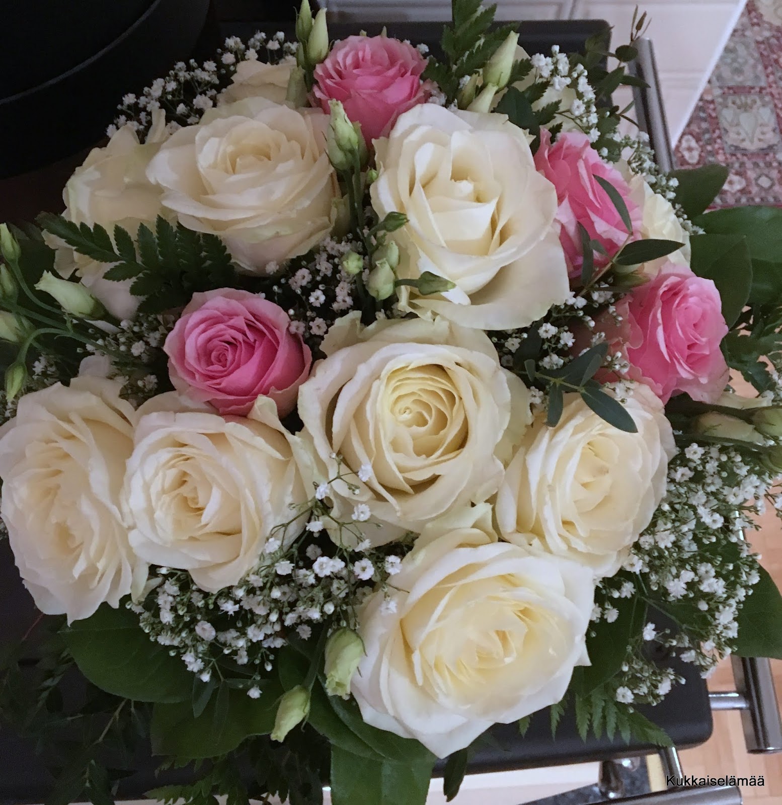 Mukavaa kun Mortilla on riittänyt leikkikavereita. Pidän erityisesti valkoisista ruusuista. Niitä oli myös hääkimpussani .Kauniita oli kimppusi .