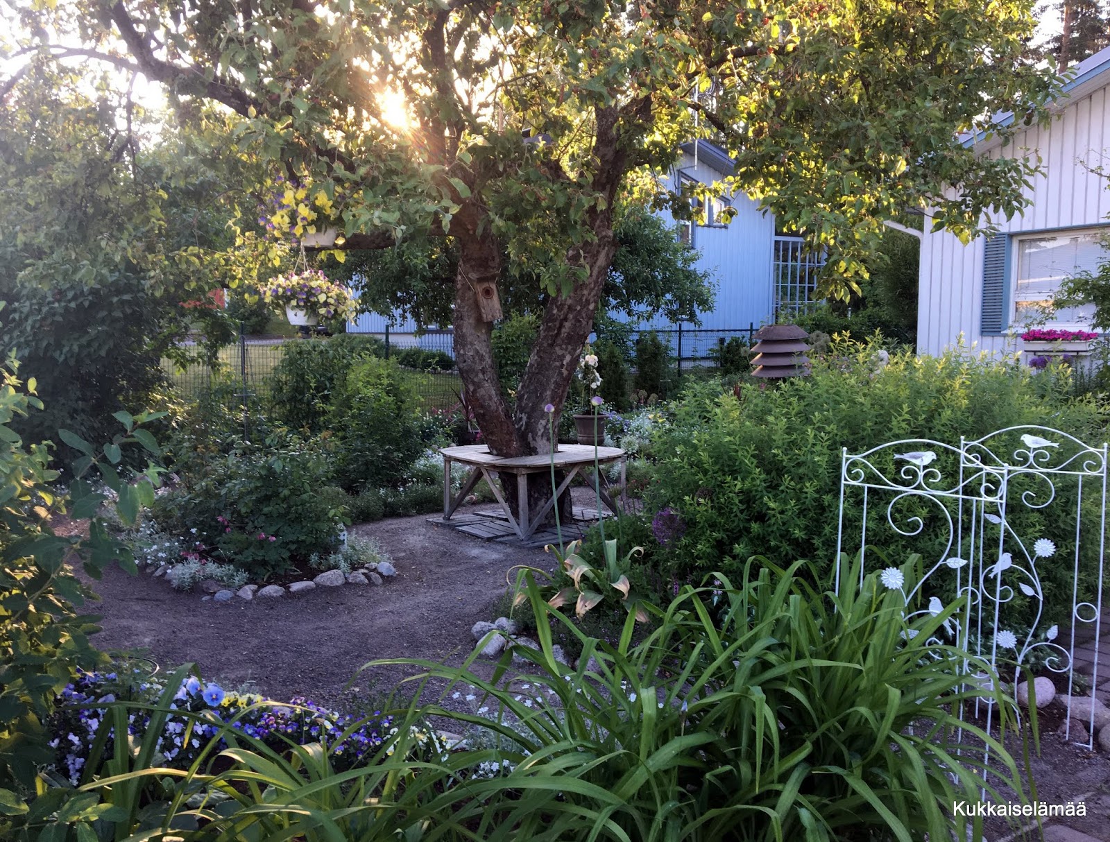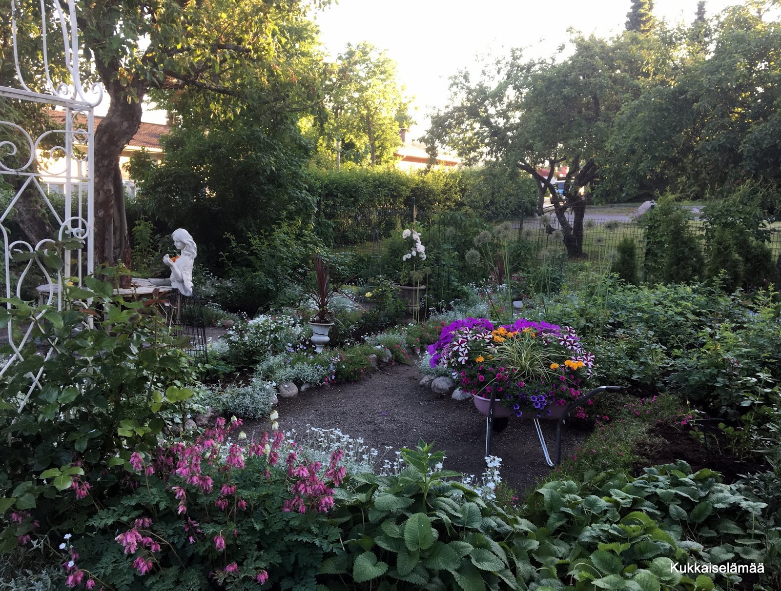 8. Mortti näyttää kovin onnelliselta, kun kulkee omia reittejään. Kaunis puutarha. Enkä nähnyt aukkoja..