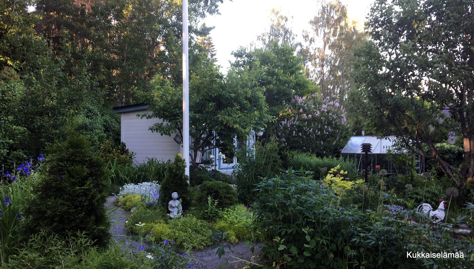 25. Heh, tulee kasveille vahvat varret, kun "ilmavirta vähän" liikuttelee 😀 Ainakin näin yritän itselleni uskotella, kun kaksi kaksijalkaista täystuhoa työntelee polkutraktoria kukkapenkkien yli tai huitoo haravalla kukkia. Onneksi koira sentään osaa liikkua jo varovammin, vaikkei polkuja aina muista käyttääkään. Kauniilta näyttää siellä Mortin temmellyksestä huolimatta. Aurinkoista juhannusviikkoa!