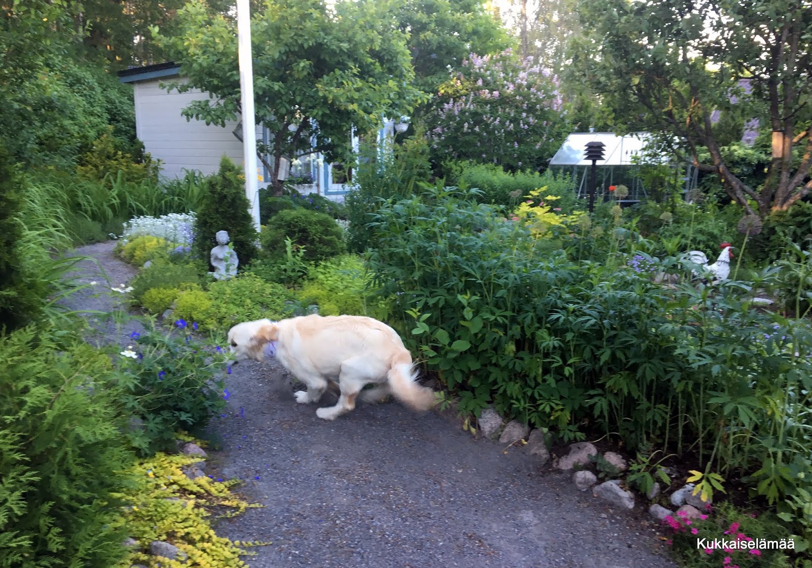13. Voi ihana Mortti, vielä hän oppiitt puutarhan säännöt ja oppii kulkemaan oikeita reittejä, Nyt vaan on vielä pikkuisen lapsen kengissä eikä kaikki muitu vielä mieleen miten pitää tehdä ja miten mennä. Kyllä tuolla on ihana koirankin vaeltaa kukkien seassa.