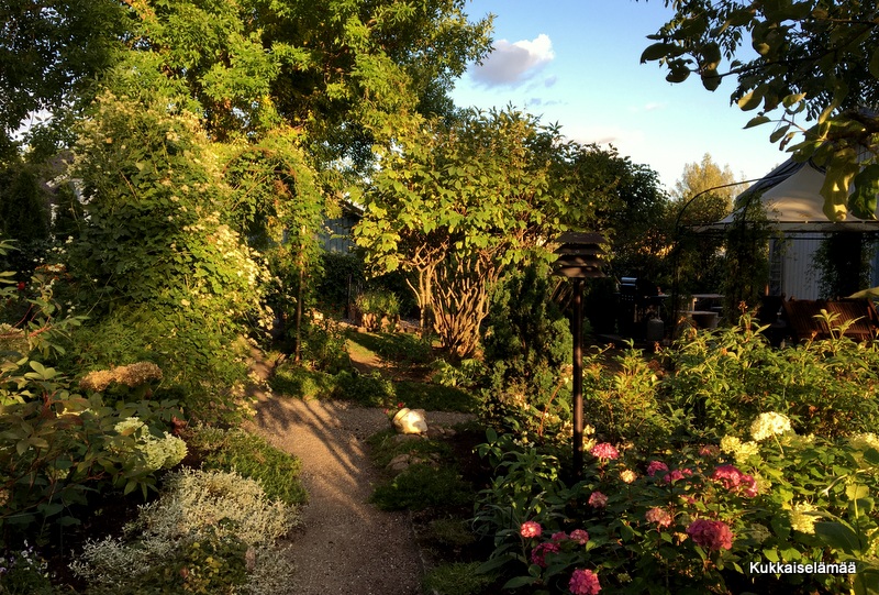 11. Meillä kukkii nyt tosi kauniisti ruusujen ja hortensioiden ansiosta. Kelitkinovat olleet hyviä pihatöihin. Onneksi Mortti voi hyvin.