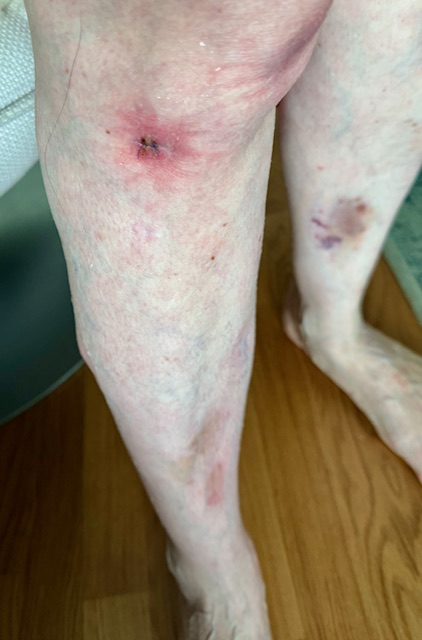 Sitten se otsikon ällö osuus… Pyoderma gangrenosum on iskenyt kinttuihini oikein voimalla. Ei niin kivaa. Tänään pidin huilipäivän kaupasta, sillä polvessa on tikit, jotka uppoutuvat ihoon ja sääressä eilen tehty viilto ihopolilla. Ihopolilla on muuten aivan ihana ylilääkäri ja mahtavat hoitajat! Siellä saa todella ystävällistä hoitoa ja hoitoon pääsee taisteluitta.