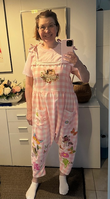 Ompelin myös tyylilleni uskollisena lökäpöksyt. Lökärit ovat vatsaystävälliset atrofiselle gastriitilleni (mahtuu turpoamaan) ja ihoni saa ilmaa (psoriasis yms.). Oikeastaan terveyteni on aika lailla sanellut vaatetyylini. Klassisesta tytöstä on tullut boheemi nainen.