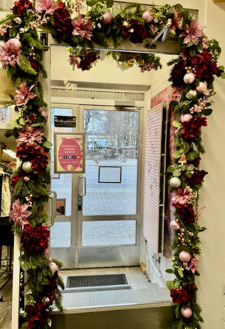 Kaupassasi on todella kaunista. Ison työn olet tehnyt kransseissa ja köynnöksissä!