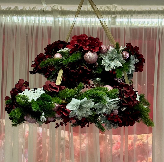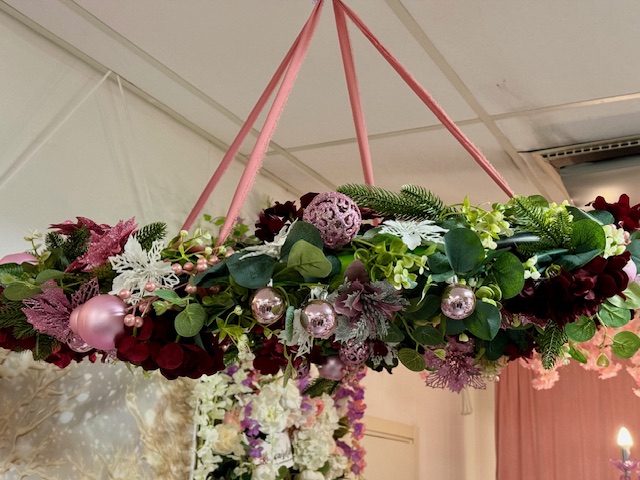 Kiitos, Sirpa. Ei tuo fyysisesti ole raskasta. Teen kuumaliimalla jättikranssit pöydän äärellä. Tunteja noihin meni ja materiaalia. Poika on raskaissa töissä apuna.