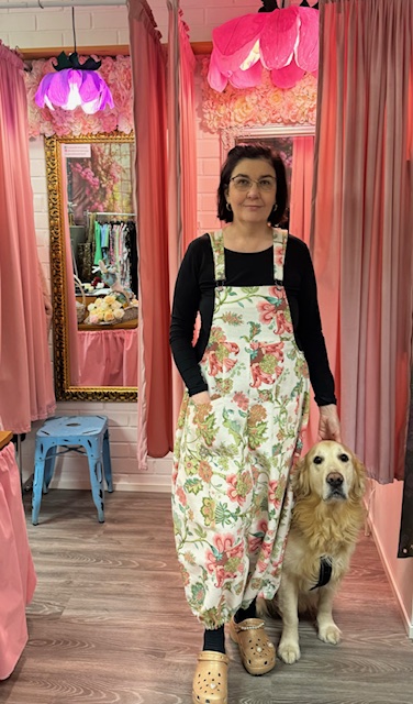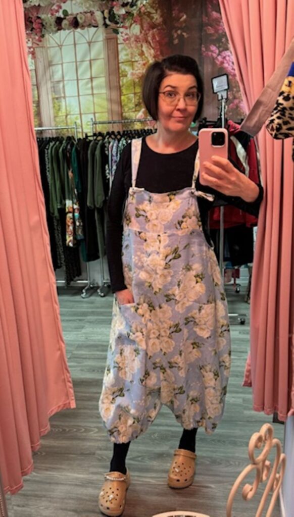 Mallistoni haalarit taipuvat moneen: juhlaan, arkeen tai vaikkapa puutarhaan. Haalareissa on säädettävät olkaimet, joko solmimalla tai soljilla. Haalarit menevät kokoon 38-44. Malli on tarkoitettu väljäksi. Edessä on reilun kokoiset taskut. Olen pessyt kankaat ennen ompelua, joten jos pesee ohjeen mukaan, ei vaate kutistu.