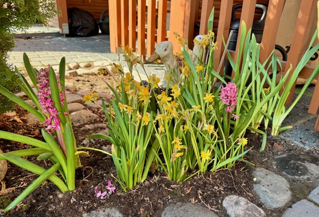 Teinpä vähän mullankaivuuta. Nostin muutaman kiven ylös ja istutin vapautuneelle maa-alalle jo kukkineet sipulikukat. Toiveissa on, että jokunen ilahduttaisi ensi keväänä.