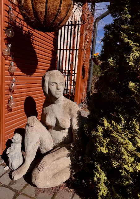 Anopin tekemä patsas muutti mukanamme puutarhasta.