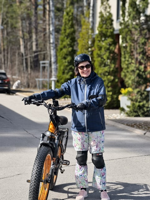 Eilen kokeilin ensimmäistä kertaa sähköpyörää. Miehet pukivat minut rullaluistinsuojiin… Ei ehkä ollut minun juttuni tuo sähköpyörä. Pelotti, että telon itseni.