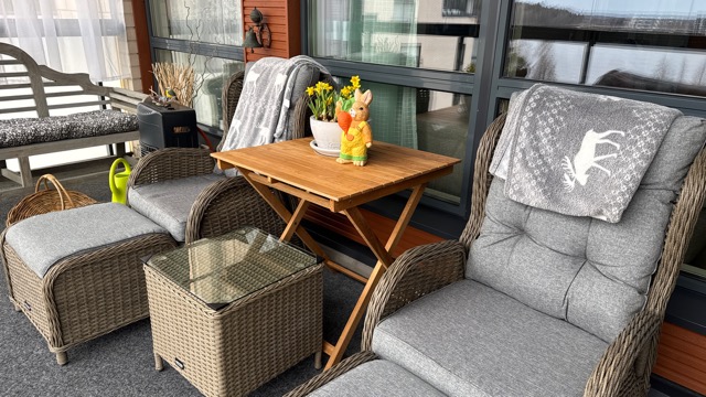 Mies pesi tänään kaikki parvekelasit ja siivottiin parveke valmiiksi luvattuihin lämpimiin keleihin.