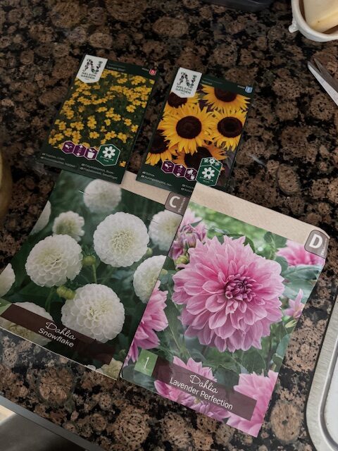 Ruukkupuutarhan perusteita on jo luotu. Ostin kaksi daalian juurakkoa, liotin ja pistin multaan. Samoin tein ruostekukalle, joka on suuri rakkauteni.