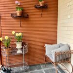 Tänään paistoi ihanasti aurinko. Niinpä suuntasin patiohommiin. Eilen Posti toi osan tilaamistani patiomööpeleistä.