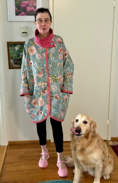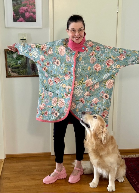 Ompelin gobeliinista kukkatakin. Tarkoitus oli ommella takkiin kukanterälehtikaulus, mutta en saanut tehtyä mieleistäni. Niinpä oli tyydyttävä pystykaulukseen. Vielä se kukkakauluskin tulee joku päivä johonkin takkiin…